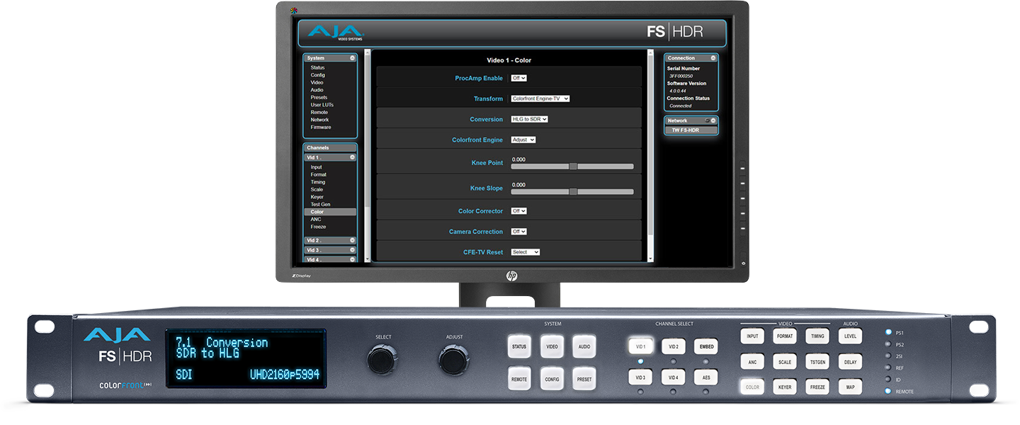 AJA’s FS range of 1RU frame synchronizers and multi-capable converters cover your needs from SD to 4K, 1 to 4 channels of HD support and advanced workflows including real time HDR transforms, with the incredible FS-HDR