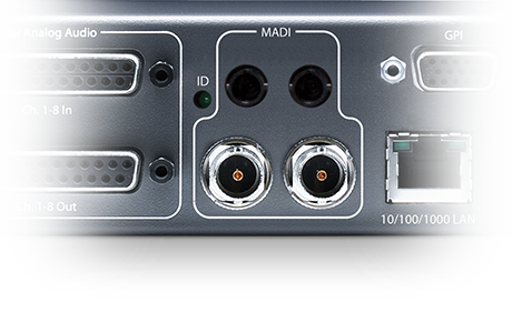 FS1-X supports both fiber and coax 64-Channel MADI input and output. An internal 224 x 224 audio matrix allows full routing of MADI and all audio coming from SDI, fiber, AES and analog sources for an incredible amount of audio processing capability in a single box.