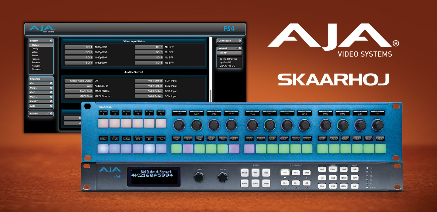SKAARHOJ’s line of hardware based control panels provide integrated control of AJA’s FS family of frame synchronizers. The new Rack Control Duo, developed in partnership with broadcast services provider NEP, supports AJA’s FS-HDR, FS4, FS2, and FS1 devices and is capable of ganging control of multiple FS products and processing channels together, making set-up and on-the-fly adjustments faster and easier for operators and engineers with a single tactile hardware control panel.