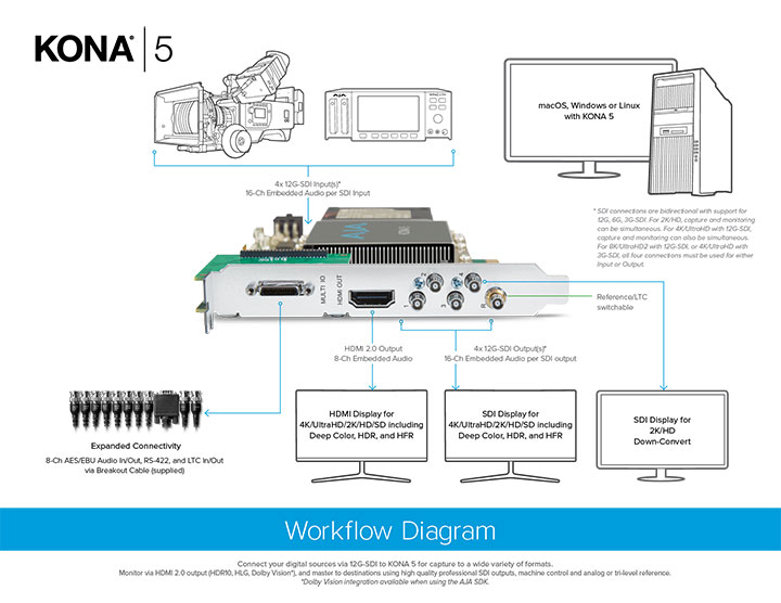 For productions handling high resolution workflows all the way up to 8K, KONA 5* is a perfect companion for the new desktop offering multi-channel 4K and 8K support.