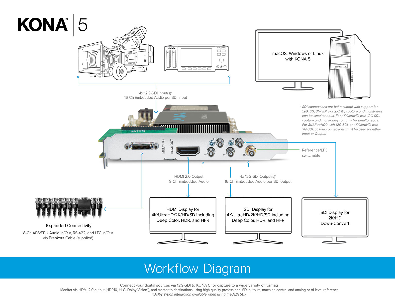 *Dolby Vision and HDR10 integration available when using the AJA SDK, or using compatible 3rd party software.