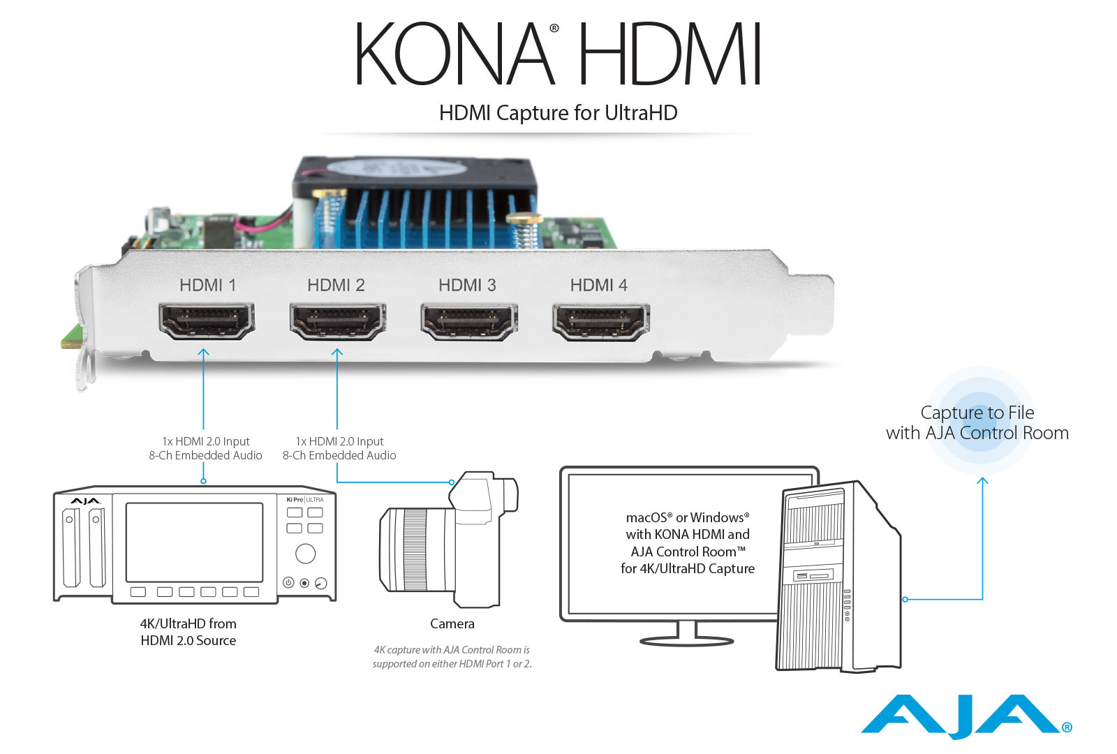 KONA HDMI is a powerful multi-channel HDMI capture card, with all of the quality and flexibility you have come to expect from AJA.