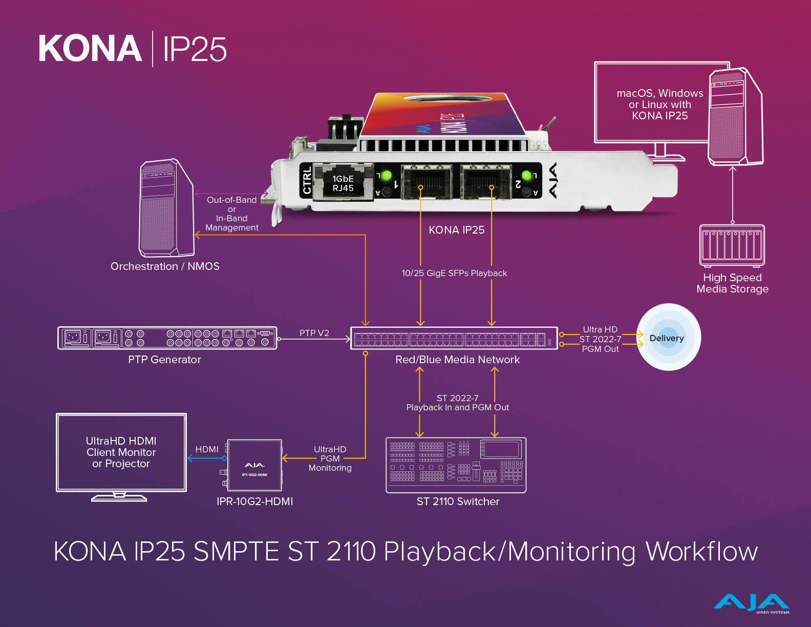 For productions handling high resolution workflows all the way up to 4K, KONA IP25 is a perfect companion for high performance workflows.