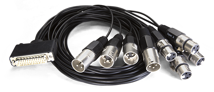 Optional breakout cable with 1x 25 pin D male connector to 8 XLR connectors providing 8-channels of input and 8-channels of output simultaneously. Also compatible with the 12G-AMA, 3G-AM, 3G-AMA, and ADA4.