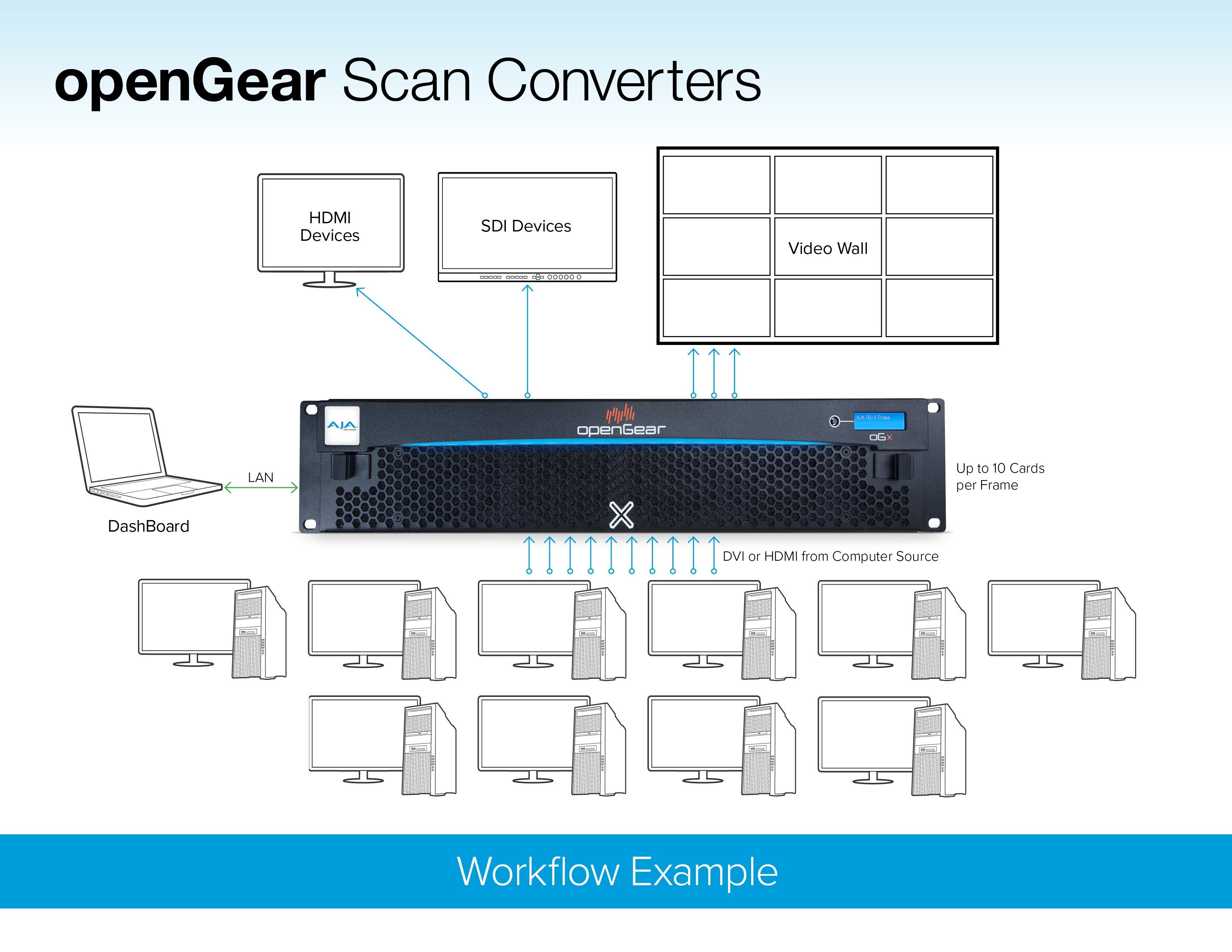 The openGear standard ensures that AJA cards will be compatible with other openGear products from certified openGear partners. With a growing list of products, openGear is the standard for professional rackframe solutions.