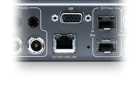 FS1-X supports both fiber and coax 64-Channel MADI input and output. An internal 224 x 224 audio matrix allows full routing of MADI and all audio coming from SDI, fiber, AES and analog sources for an incredible amount of audio processing capability in a single box.