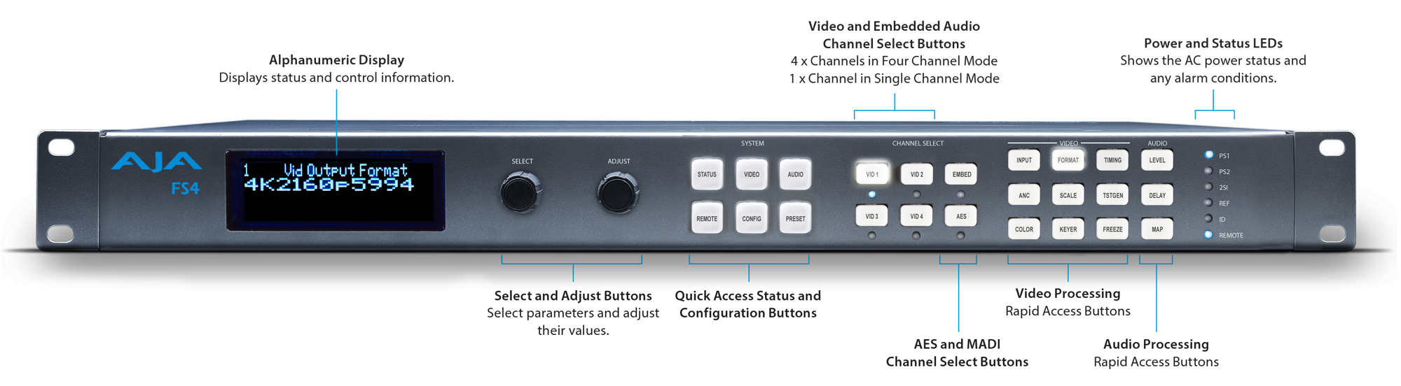 FS4 is your real world answer for conversions to and from multiple resolutions, built to AJA’s high quality and reliability standards.