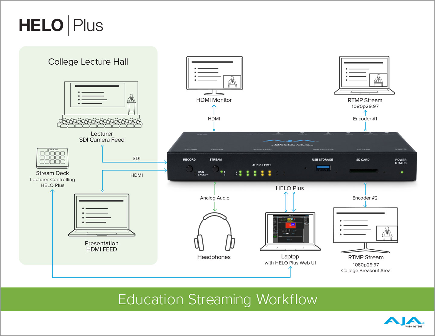 Get the new Stream Deck plug-in for HELO Plus! Creators and AV producers around the world have embraced Elgato’s Stream Deck external device controllers for their ease of use and ability to speed up productions by bringing common software and hardware actions to push button simplicity. To find out more and download the AJA Stream Deck Plugin, please visit the Elgato Marketplace. Also, please visit our support page to download the Stream Deck / HELO Plus Stream Deck Plugin Guide.