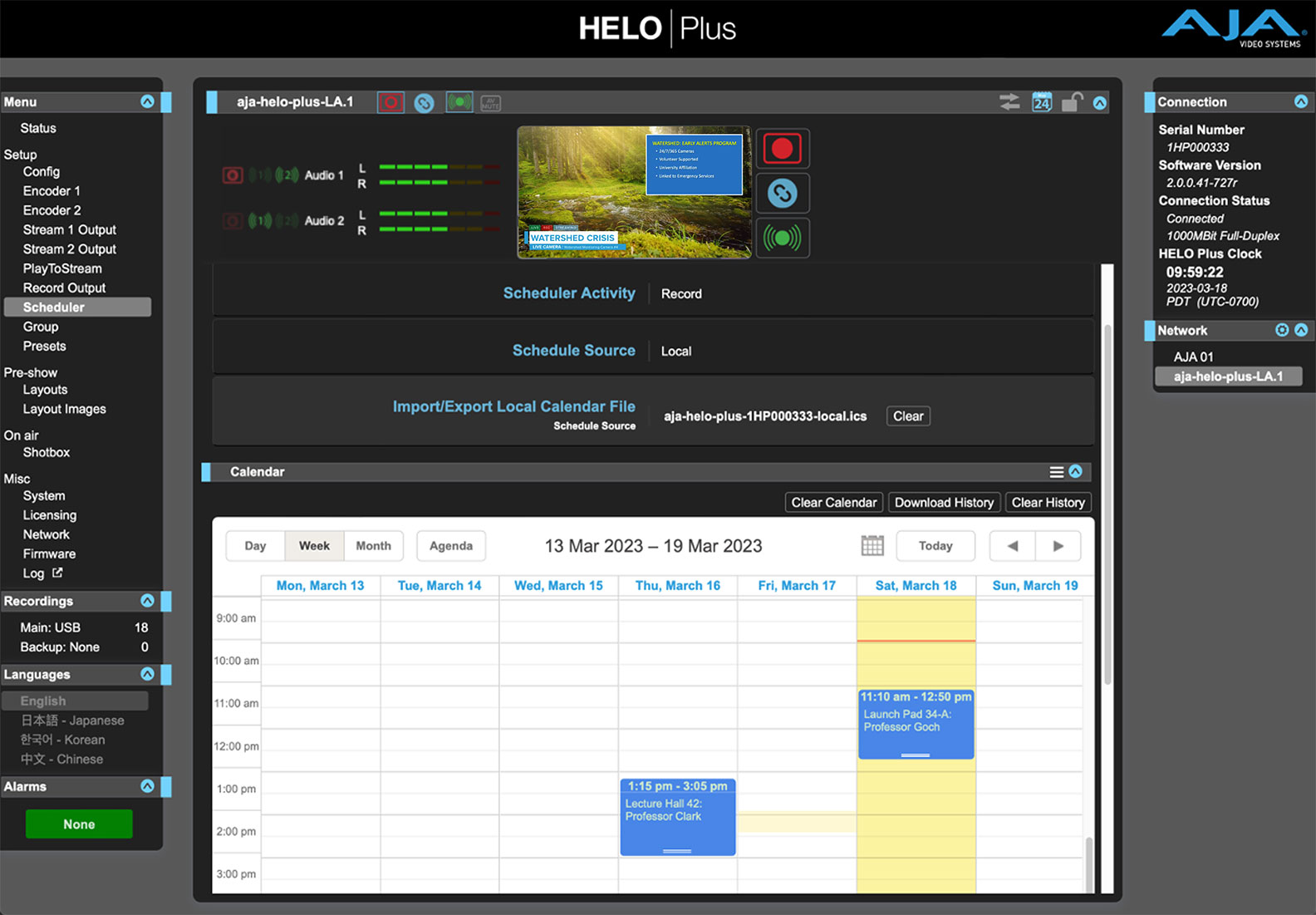 HELO Plus opens up a world of new streaming workflows for AV, live events, houses of worship, webcasting, corporate communications, production, and post. HELO Plus offers a scheduler that triggers pre-planned start and stop recording and streaming media, simplifying projects requiring definitive schedules.