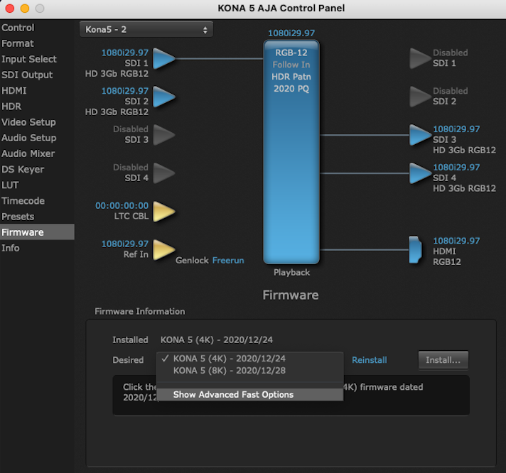 KONA 5 now supports fast bitfile-switching. In under 10 seconds you can flip between a KONA 5 personality tuned for 8K operations, to one dedicated to 4K and below. No waiting for firmware to update, no reboots required.