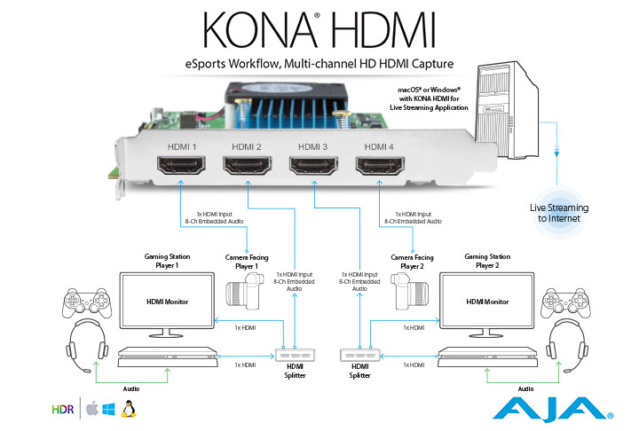 The power of KONA HDMI can be utilized for live streaming and events production via Telestream Wirecast, vMix and other third party software.