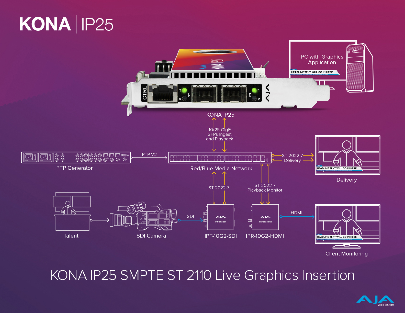 Further, the KONA IP25 supports ST 2022-7 for both Rx and Tx via the dual 25G SFPs to provide hitless redundancy and ensure peace of mind for broadcast ingest and playout scenarios.