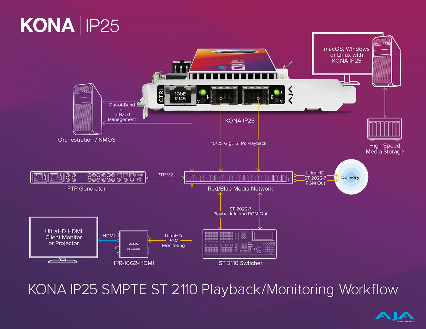 For creative users, the operational experience of using your favorite creative tool remains unchanged, and with AJA Control Panel additions to set up capture and playout, you are assured to have a seamless expansion into ST 2110.