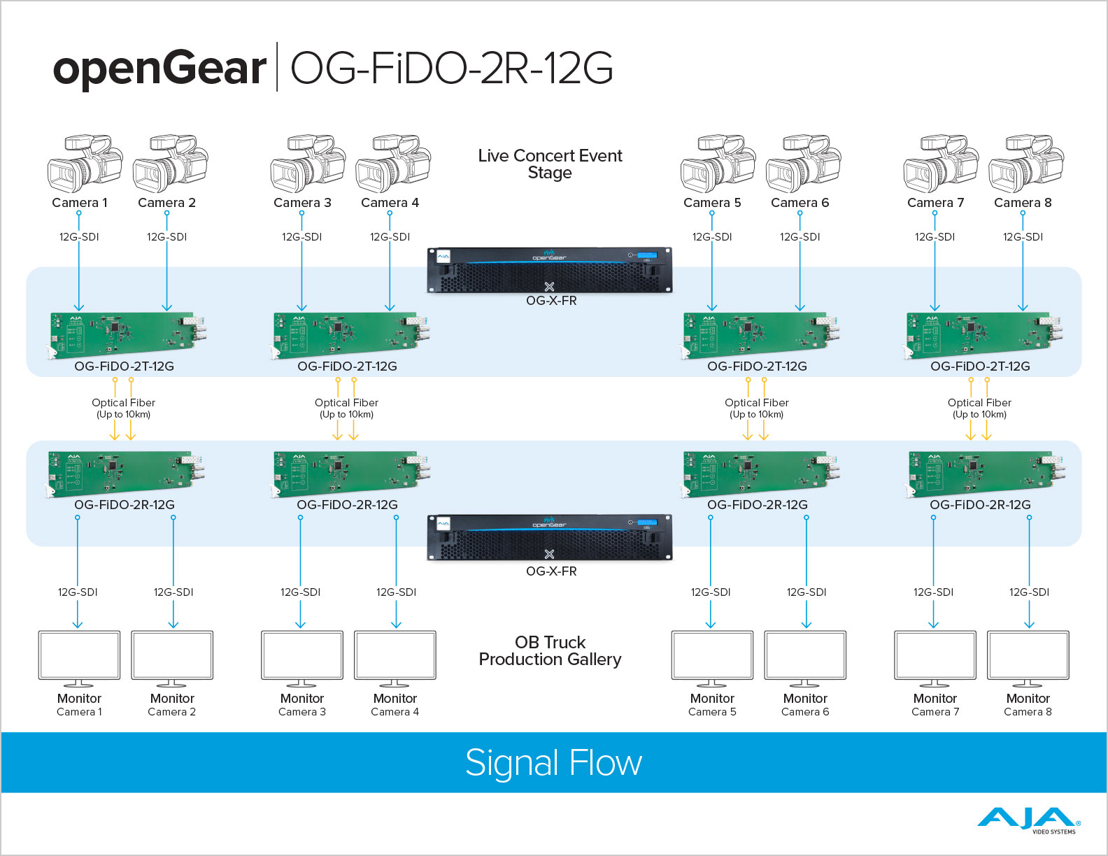 AJA openGear OG-FiDO products are designed for use in high density openGear 2RU frames including AJA’s OG-X-FR frame, with industry standard DashBoard software support on Windows®, macOS® and Linux®, offering remote control and monitoring over a PC or local network.