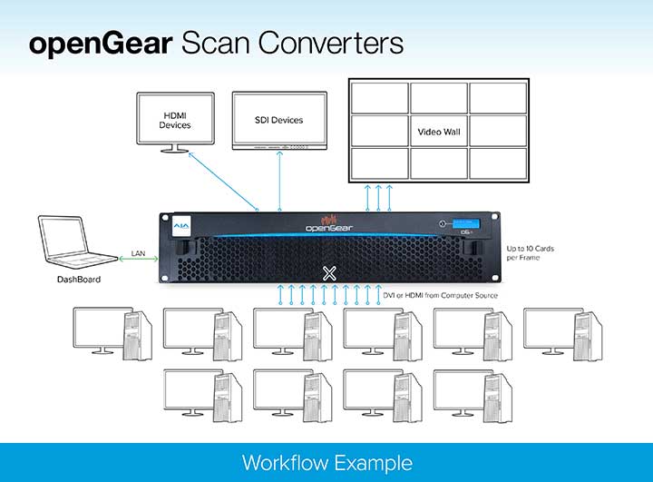 Take full control of aspect ratio, image rotation, and frame rate conversion with on-screen controls in the DashBoard software that shows you exactly what your source and output will look like, including the formats that are coming in and the choices you have made for the signal going out.