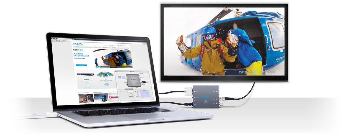 Connecting a ROI Mini-Converter via USB to a computer running the free Mini-Config application lets you interactively select a Region of Interest from the incoming computer signal and have full control over how that region is scaled to the output resolution using AJA’s high quality scaling algorithms for the cleanest picture quality possible.