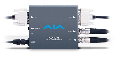 AJA’s ROI-DVI Scan Converter allows exceptionally high quality conversion of computer DVI and HDMI outputs to baseband video over SDI at an affordable price and a very portable size. With extensive audio functionality, incredible image scaling as well as aspect and frame rate conversion, ROI-DVI fulfills the growing need to properly incorporate computer signals into the video world without sacrificing budget or space.